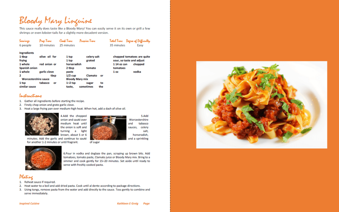 This recipe for Bloody Mary Linguine is an excerpt from my cookbook ‘Inspired Cuisine’ and it is one of my favorite recipes. It really does taste like a Bloody Mary!