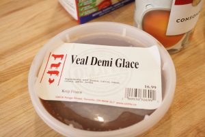 Not all is lost however, as I did recently find Veal Demi Glace locally at Olliffe Butcher Shop at Summerhill in Toronto. Their version is good, but it seems to me that it is a mix of Sauce Espanol, which I make routinely, and Glace de Viande. The only draw back is the quantity that you have to use, instead of a 1/4 of a cup, you will need more like a half to 3/4 of a cup. But, the flavor and color is there. And, beggars can’t be choosers. Beware, the demand is high, so you are not guaranteed to find it all the time.