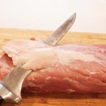 - Next, trim the silver skin or any membrane left on the loin, again with the boning knife facing away from you.