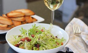 Frisée can only really be made with frisée, although recently I have been trying baby escarole. Neither seem to be readily available at my local grocer.