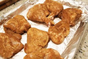 It’s not really 16 spices, but close. The spice blend gives this chicken not only flavor but a nice color and aroma. It looks almost blackened, but the meat is tender and juicy.
