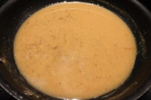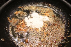 - Add 2 tbsp unsalted butter to the pan and swirl until the butter is sizzling. Add 4 cloves grated garlic and sauté for a minute or until the garlic becomes fragrant. Add 1/4 cup Dijon mustard and stir to combine. Add 2 tbsp all-purpose flour and stir to combine.