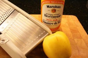 - Add rice wine vinegar, toss to combine and refrigerate until ready to use.