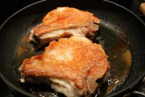 Tip : Use a pan that easily accommodates one or two pork chops, do not crowd.