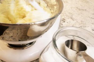 - Add 1/3 cup all-purpose flour, beat again until fully incorporated.