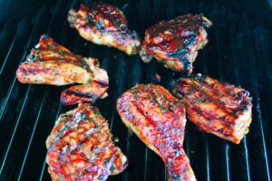 - After 6-8 minutes, turn the chicken pieces and grill for 8-10 minutes longer with the grill cover closed.