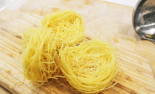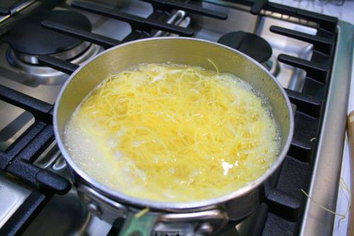 - 2-3 nests angel hair (capellini) uncooked, broken into 2 in lengths