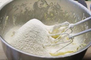 - Add vanilla and milk and mix until the batter is fully mixed, about 4-5 minutes.