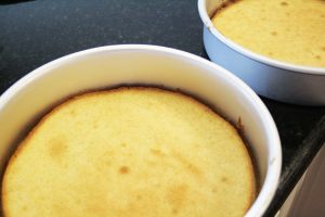 - Spread the batter right to the edges of the pans and place in a pre heated oven for 20 minutes or until the edges start to become golden.