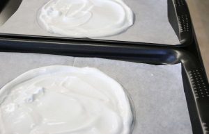 - Place parchment rounds on a baking sheet and spread the meringue on the rounds, going right to the edges. Try to keep the level consistent for each round.