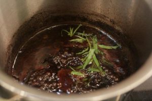 - Add 1 tbsp red wine vinegar and deglaze the pan and reduce the vinegar until totally evaporated, about 2-3 minutes with the pan uncovered.