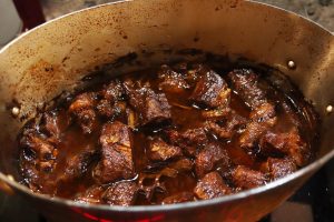- Transfer pork to a pre heated oven and braise for about 2 hours or until the pork is soft and tender.