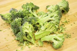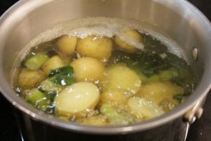 - Slice 3-4 florets of broccoli into quarters and add to potatoes and cook for 2-3 minutes.