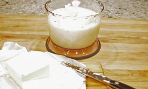 - Transfer cream mixture to food processor. Pinch 12 oz cream cheese into 1-to-2 inch pieces and add to food processor. Add 3/4 cup milk (plus 1 tablespoon of white vinegar to make buttermilk) and a pinch of kosher salt Process mixture until smooth, 20 to 30 seconds. Transfer mixture to a beaked measuring cup.