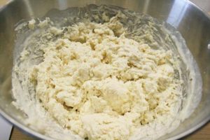 - Add buttermilk and stir with a fork until a loose dough forms. The batter will be a bit sticky.