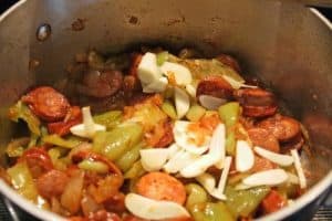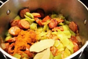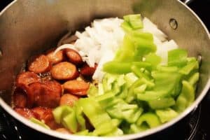 - 1/2 lb Andouille sausage, linguiça sausage or Polish sausage