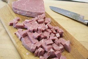 - 2 slices corned beef about 1/4" to 1/2" thick, diced