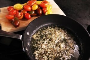 - Heat 1 tbsp olive oil and 1 tbsp unsalted butter in a medium deep sided skillet over medium heat.