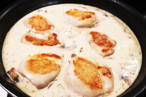 - Add 1/2 cup heavy cream stir to combine and return chicken to the skillet and allow sauce to thicken.