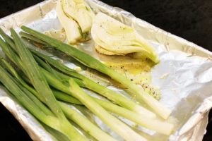 - When done, remove aluminum foil and add whole spring onions, increase heat to 400°F and bake for another 15 minutes.