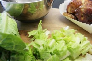 - 1 1/2 head Romaine lettuce cut into 1 1/2" slices