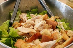 Chicken Caesar is really simple to make! Romaine, bottled or homemade dressing, rotisserie chicken and packaged croutons. With a few improvements, you may find the flavor a little more enticing.