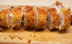 Chicken Cordon Blue is a blast from the past. It was all the rage in the 70’s and it is all coming back now. Good things should not be forgotten and thankfully, this beautiful dish is one of them. The ingredients are simple and the cooking method hasn’t changed, but the presentation has been updated for today.