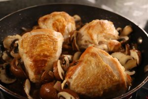 Tip : You can easily substitute skin on chicken thighs if you cannot find free range chicken breasts.