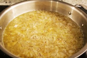 - Add 2 large shallots, thinly sliced or 1/2 sweet onion diced and 4 cloves garlic, thinly sliced and sauté until softened, about 4-5 minutes.