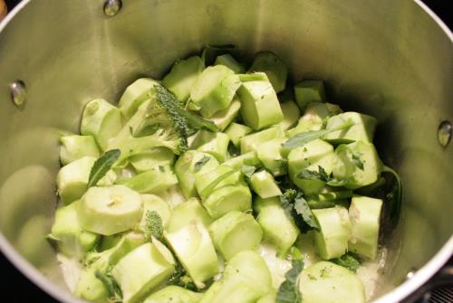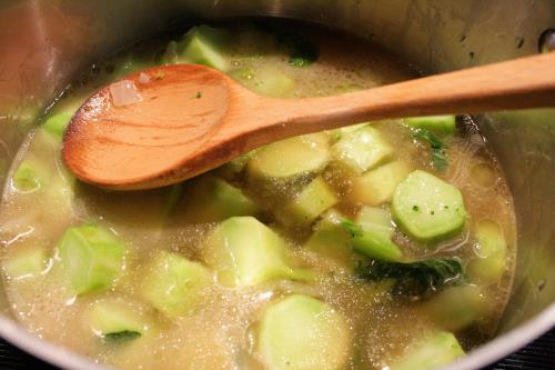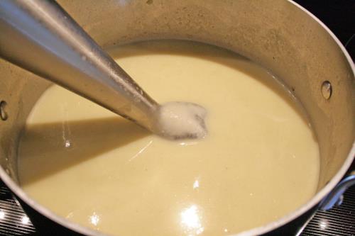 - Remove from heat when done and allow to cool slightly, then either move to a blender or use an immersion blender to puree the broccoli until the soup is velvety smooth,