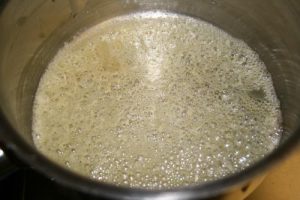 - Add flour and stir for a few minutes; the roux should be light colored and is ready when there are bubbles throughout.