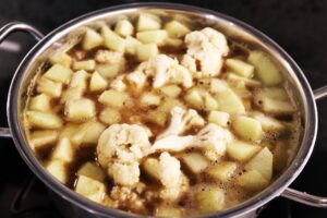 - Add 1 1/2 cup chicken stock or enough to fully cover the vegetables.