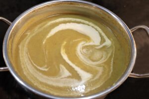 - When the soup has cooled to room temperature, purée the mixture in a blender or blend using and immersion blender.