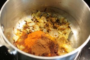 - Add curry powder, paprika, cloves and cinnamon and stir to combine, cook for another minute.