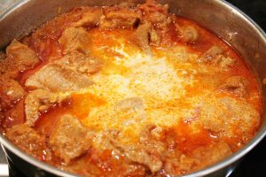 - Return to heat and add veal, stirring to combine with onions, tomato and paprika.