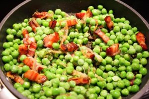 Peas and spring go together for me. I like to use frozen baby peas for this recipe as the colors remain brilliant green and it takes no time at all to prepare. I recently served it with Pan Seared Rack of Lamb.