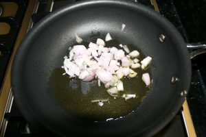 - Add 1/2 tablespoon of olive oil to frying pan and heat over medium high heat.
