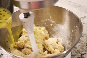 - Add wet ingredients to dry ingredients and mix gently until combined.