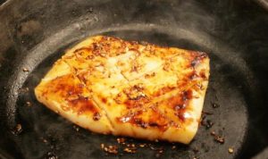 - Pre heat cast iron grilling pan on high heat for about 5 minutes.
