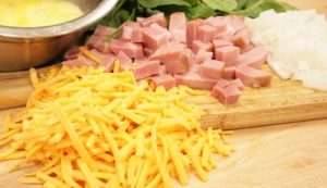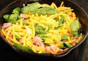 Another great Frittata made with ham, cheese and baby spinach. It’s just perfect for a cool fall day. Add a side salad of romaine and fresh crunchy bell peppers and you have a perfect lunch.