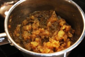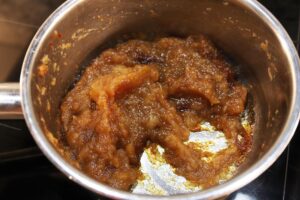 - Cook for 1 hour and 30 minutes, or until the mixture is thick and has turned a golden color.