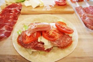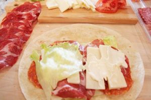 There really is no recipe for this Italian Sandwich Wrap. It’s just a change from a sandwich with bread and uses whatever you might have on hand. In this case I had a package of antipasto, and the rest of the ingredients were already in my refrigerator. I just combined it all to make this sandwich wrap. A nice change.