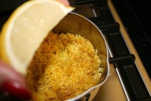 Lemon rice is a wonderful side dish for just about any pan fried or seared recipe, whether fish, chicken or veal. The color is brilliant and the ‘lemony’ taste is perfect when you are looking for something beyond plain white rice.