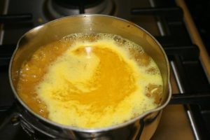 - Melt butter in a small sauce pan over medium heat.