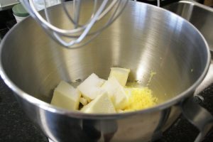 - Beat butter, sugar, zest until light and fluffy, about 3 minutes. Add yolk and vanilla and beat until combined.