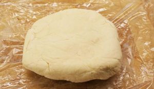 - Divide the dough in half, pat into a disk, wrap in plastic wrap and put in the fridge until firm, about an hour.