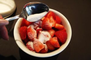 Macerated Strawberries, or for that matter any fresh berries, can be macerated. Just slice and add sugar and let it do its magic. Wonderful with ice cream, cake or just on its own.