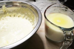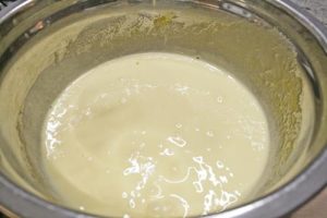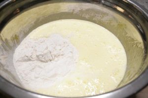 - Add warm milk and butter to flour mixture, mix until blended and smooth.