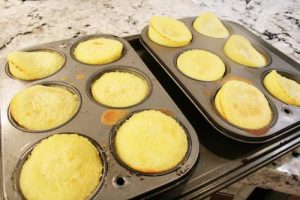 Tip : The eggs should be room temperature and the milk and butter should be warm, but not hot. Fill the muffin tins as soon as the batter has been mixed as the batter tends to separate.