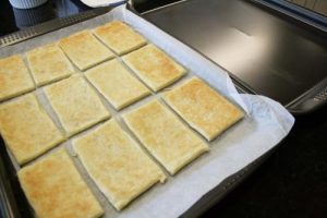 - When done, remove second cookie sheet and parchment and allow to cool.